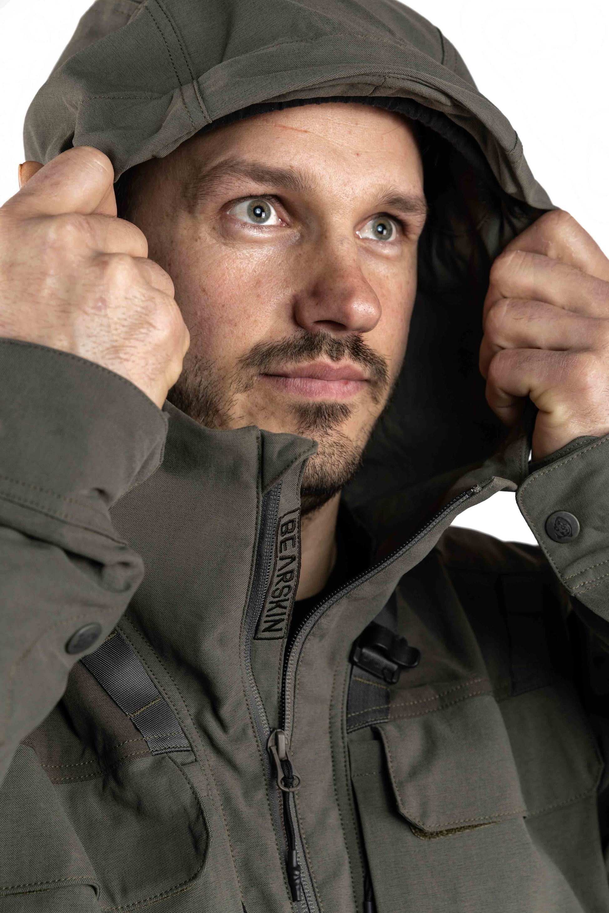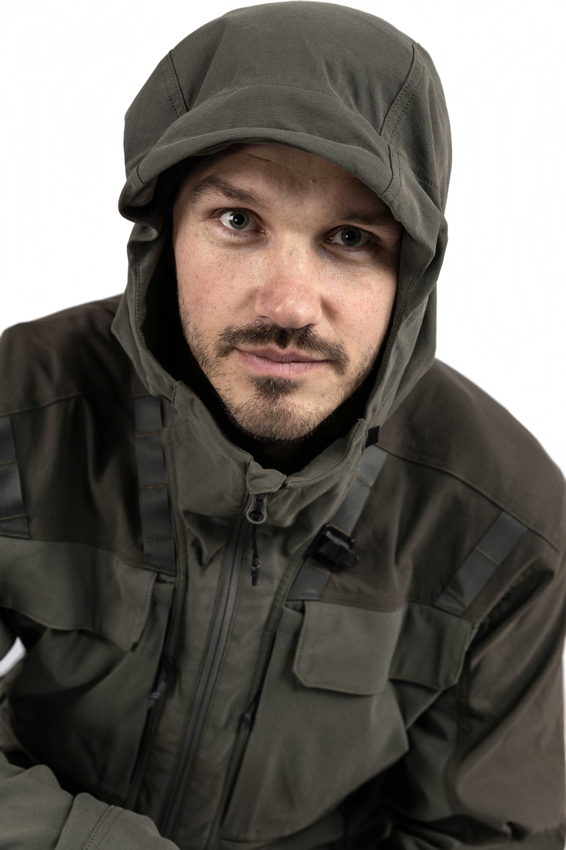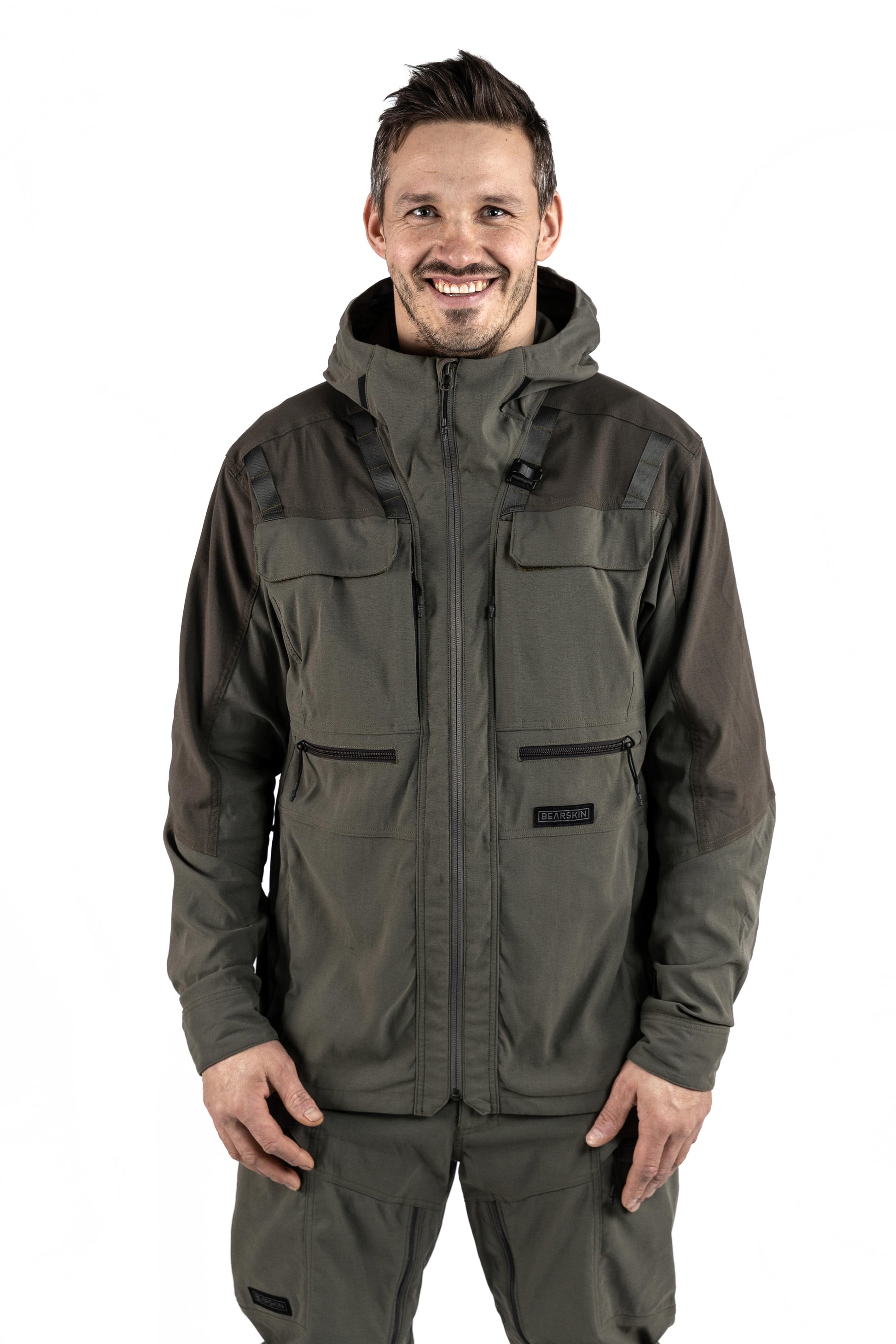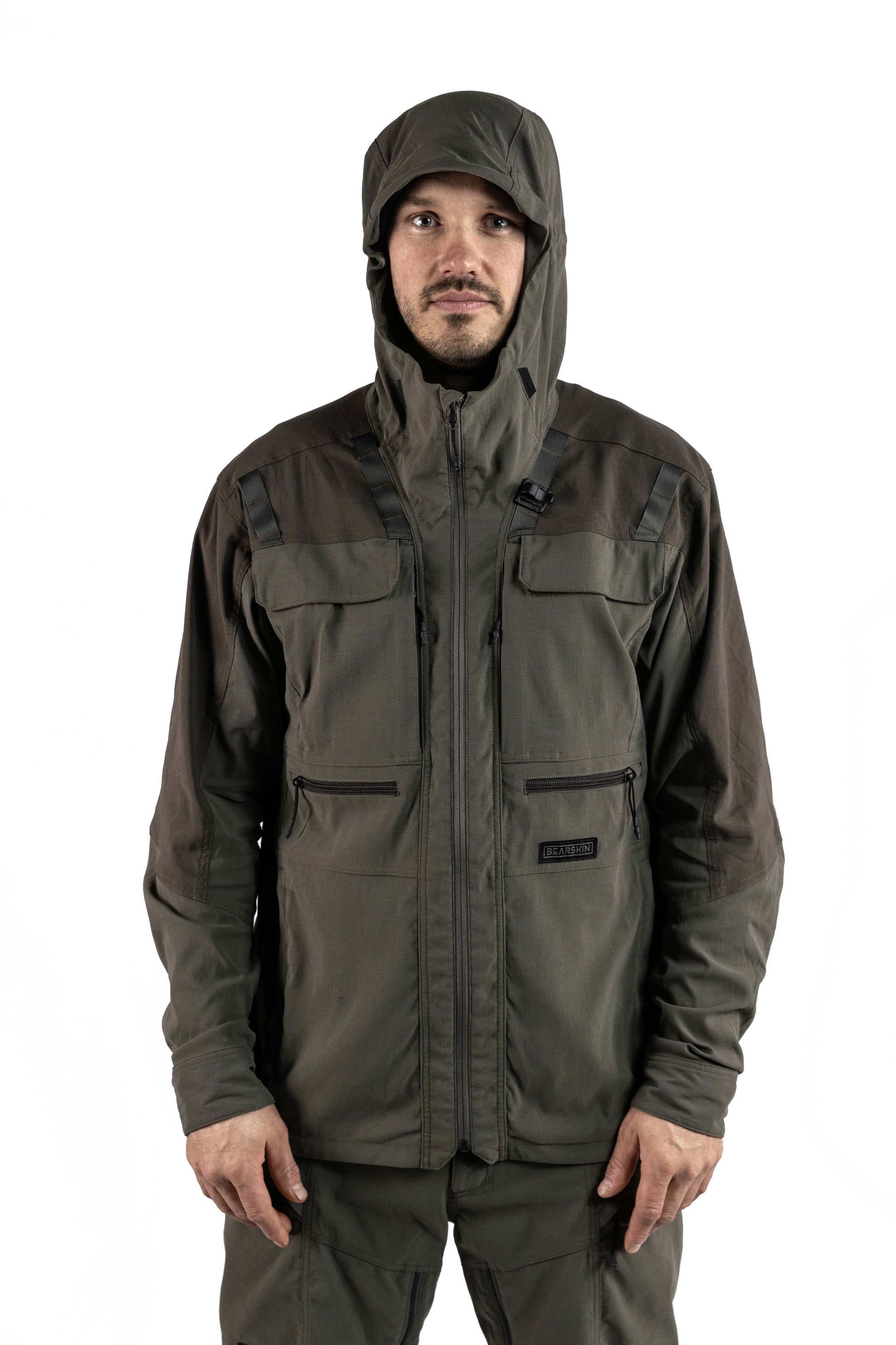 Utrustad med en tvåvägsjusterbar huva, en robust hängare på baksidan och ett fäste för radiomikrofon på varje sida, är Cordura-jackan det självklara valet av praktisk komfort. Med två bröstfickor, två små horisontella utrustningsfickor och två stora handfickor samt ryggficka kan du enkelt ta med dig alla dina jakttillbehör.